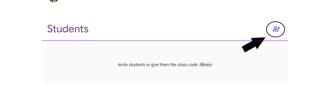 Step 4: You can also invite students via a code as well. The code allows you to invite a whole group of students at once. The code is located on the front page of the classroom. For security reasons the code in the image below is blurred out.
