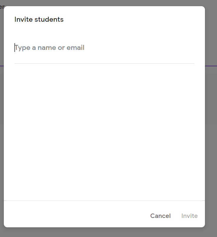 Step 3: A new window will appear saying “Invite Students” type in the name or email of the desired student you would like to invite and click invite. The student should now be added to the classroom