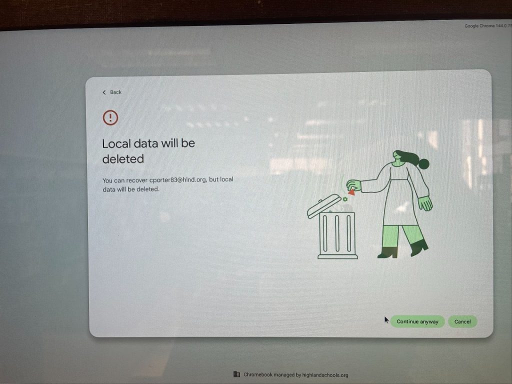 When logging into a chromebook after you have recently updated your password, you may be prompted with a window reading “Password has changed since the last time you signed in.”